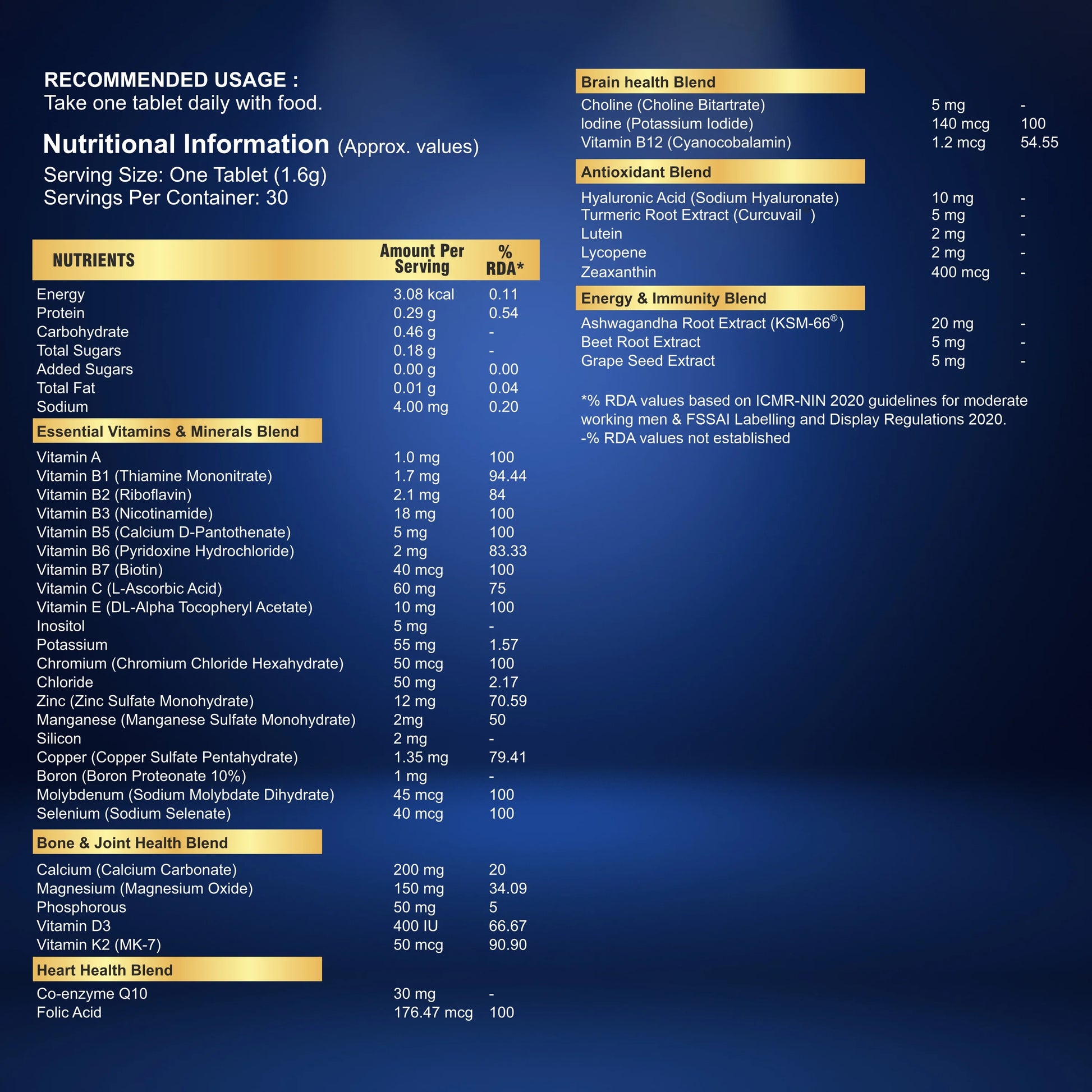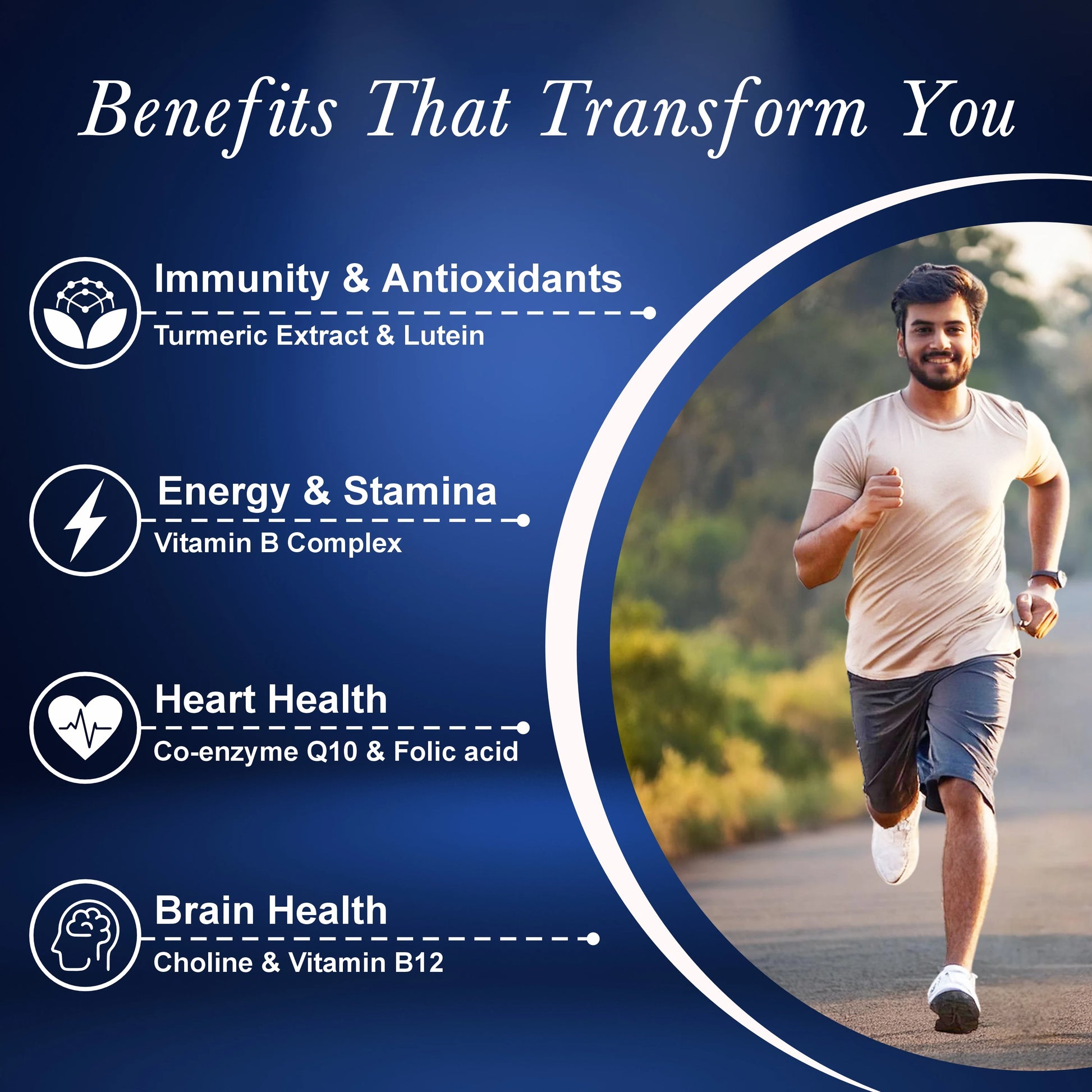 Specialized supplements for seniors to maintain bone strength, heart health, memory, and active living.
