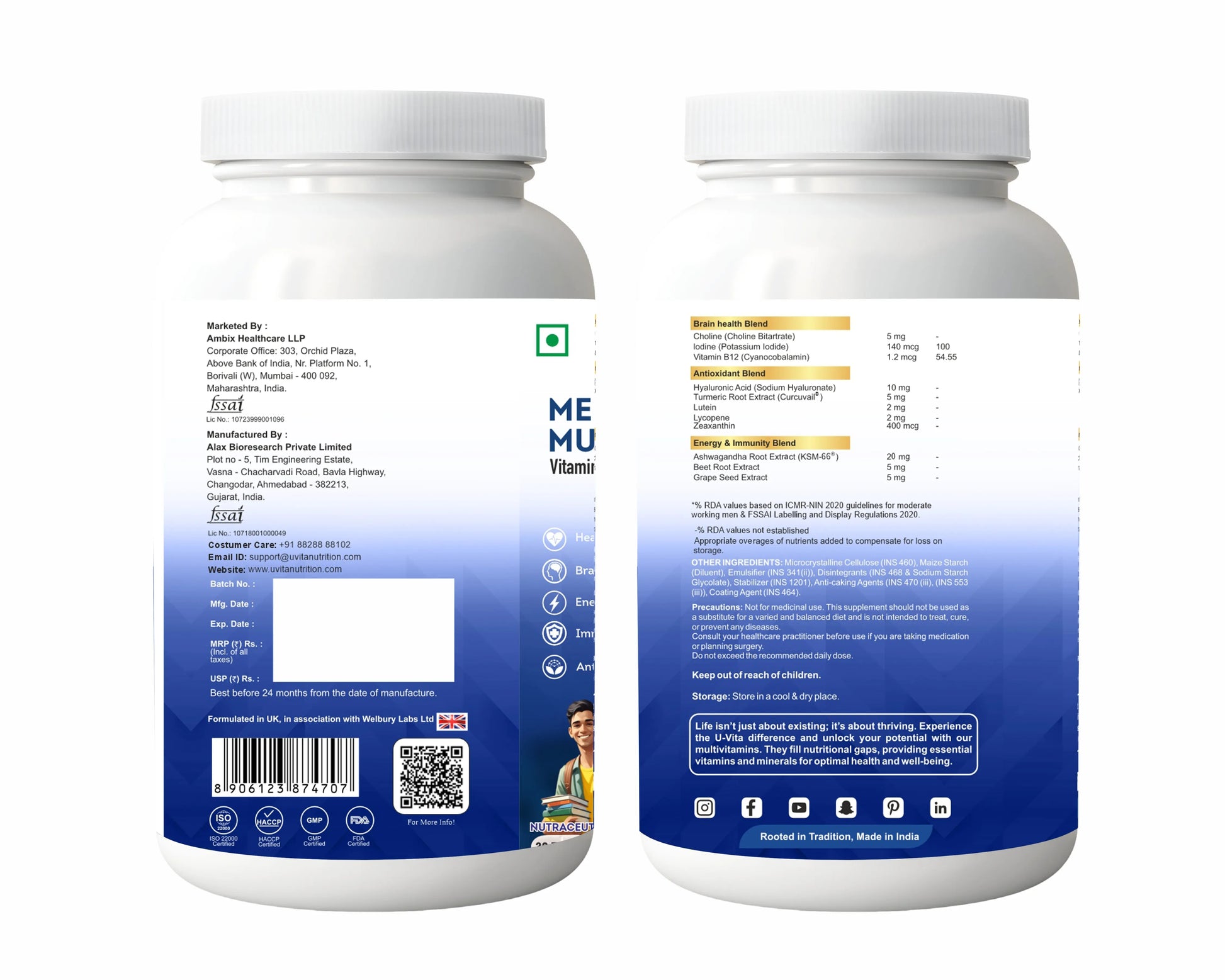 At U-Vita, we combine the wisdom of time-tested herbs with modern scientific research to create safe, effective, and affordable nutrition you can trust. Every product is crafted under strict international certifications (GMP, ISO, HACCP), with transparent labels and clinically studied ingredients — designed to support your everyday health needs, naturally and reliably.