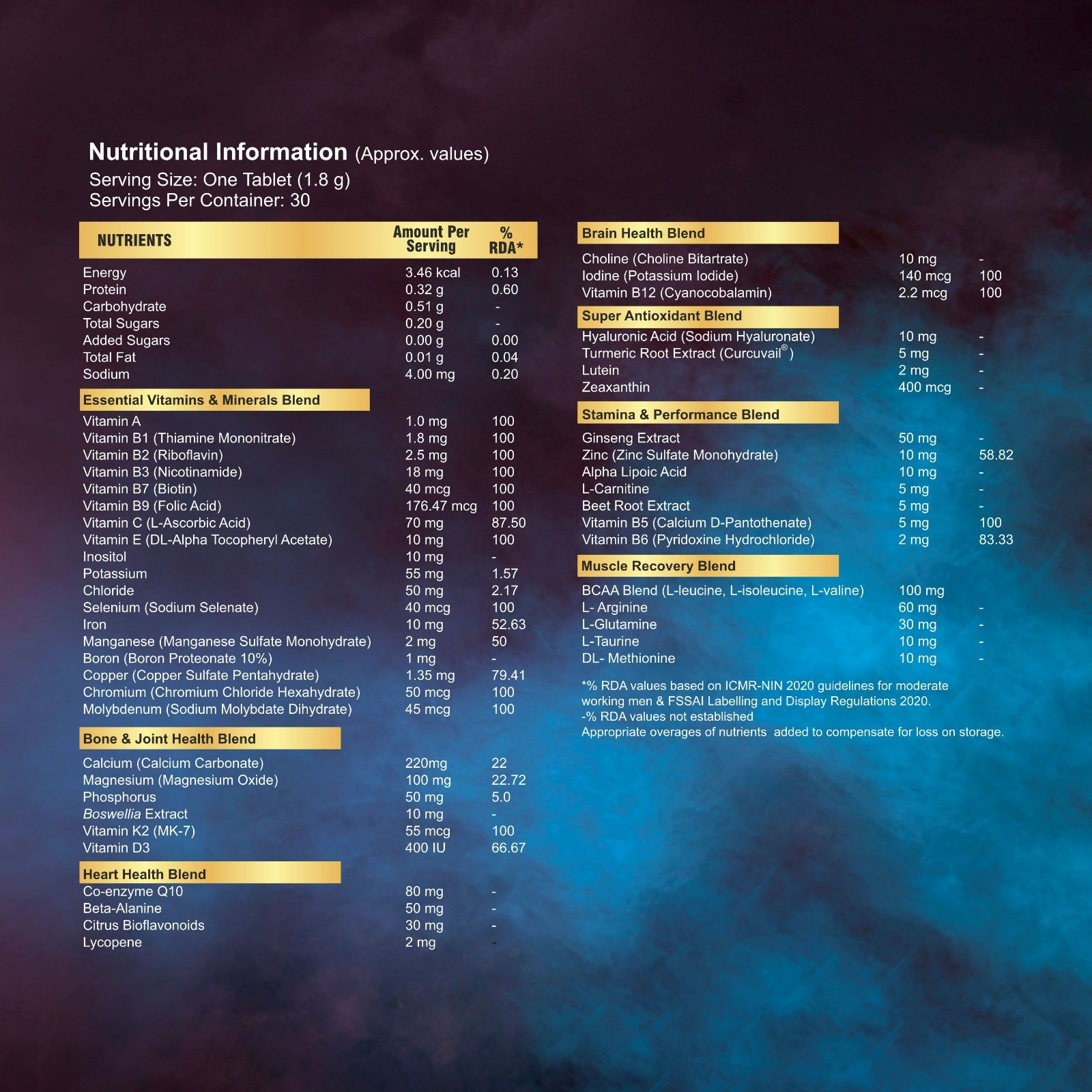 • Muscle, Bone & Joint Support: Calcium, Vitamin D3, Vitamin K2, Magnesium, and Boswellia help support bone strength, joint flexibility, and muscle recovery, reducing the risk of discomfort from high-intensity activity.