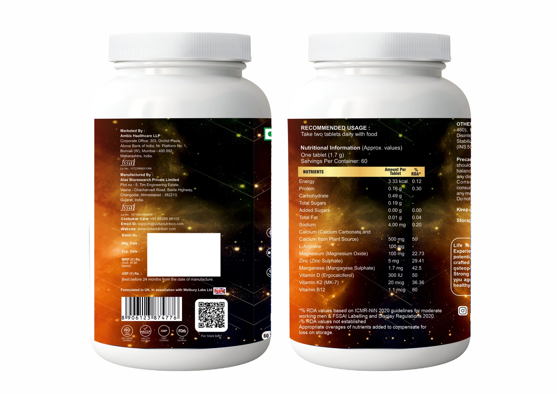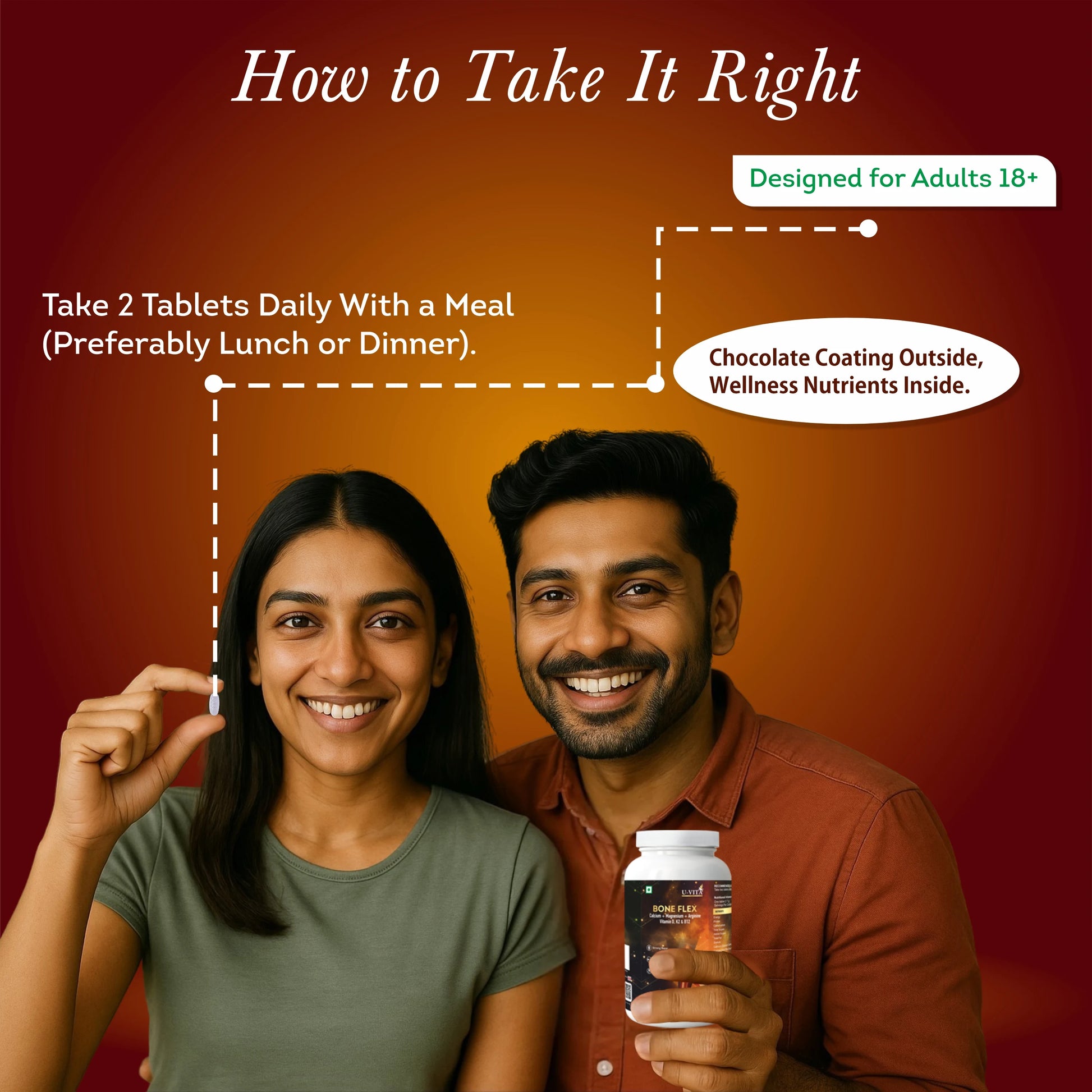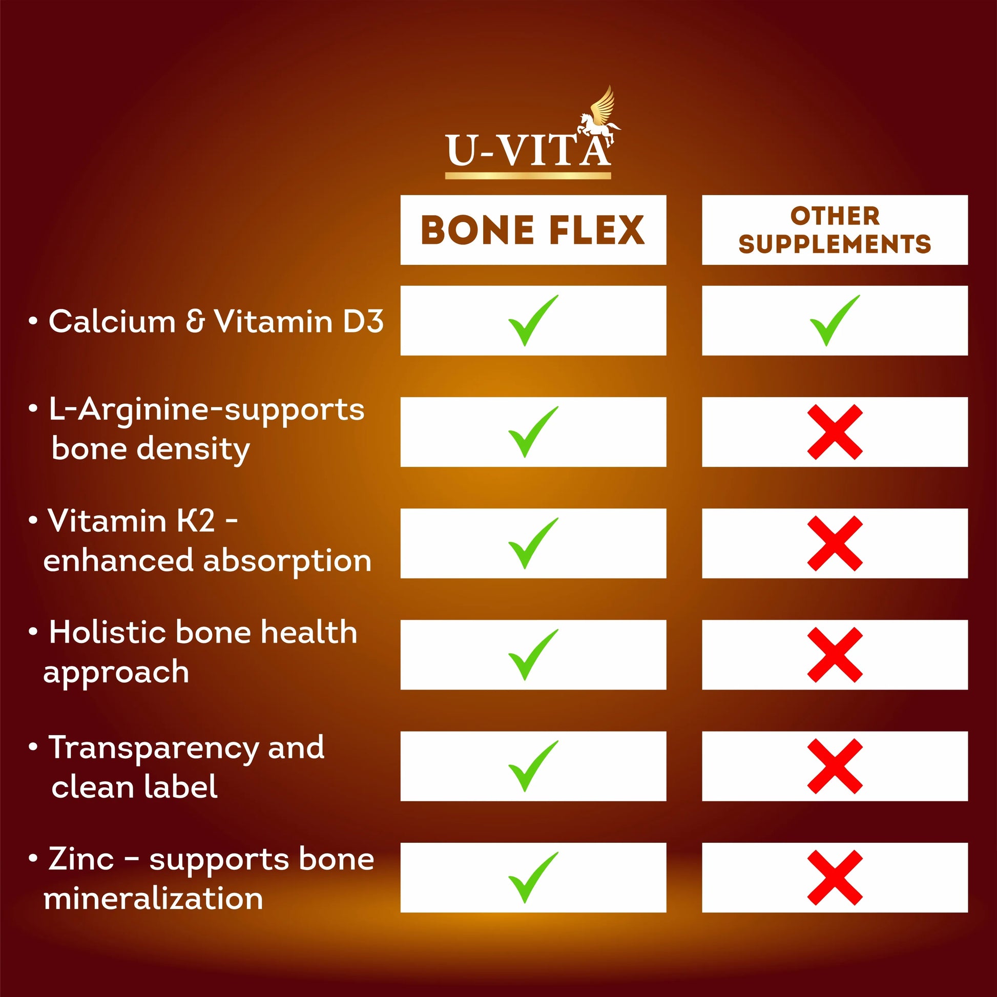 U-Vita Bone Flex is a premium bone health supplement specially formulated to help maintain strong, healthy bones at every stage of life. Enriched with key nutrients like Calcium, Magnesium, Vitamin D, Vitamin K2, and Arginine, Bone Flex supports bone density, enhances calcium absorption, and promotes overall skeletal strength.