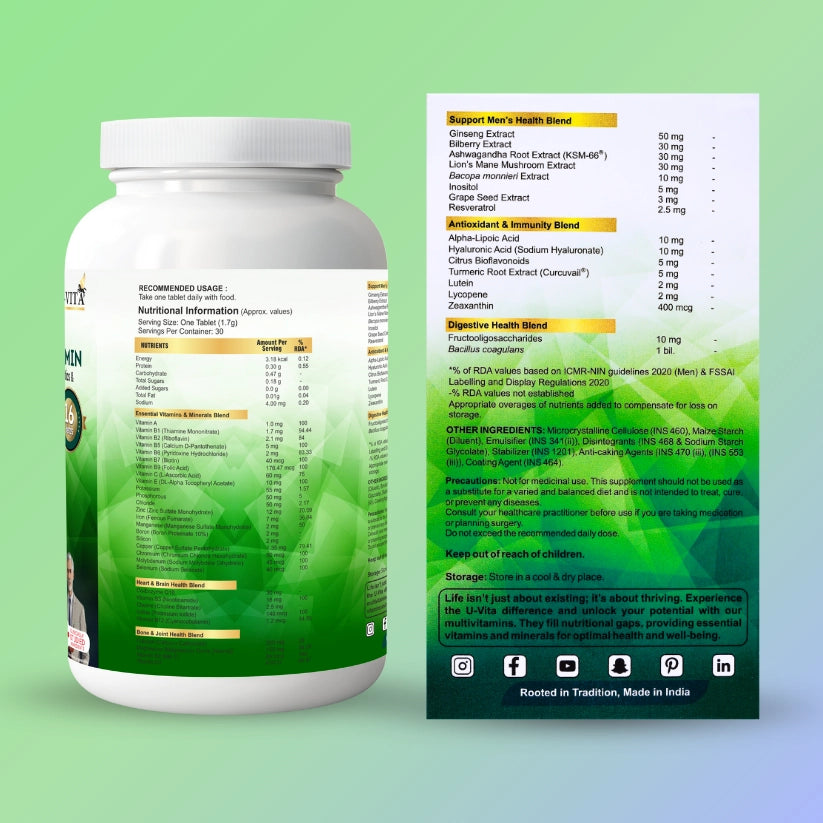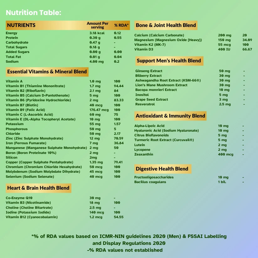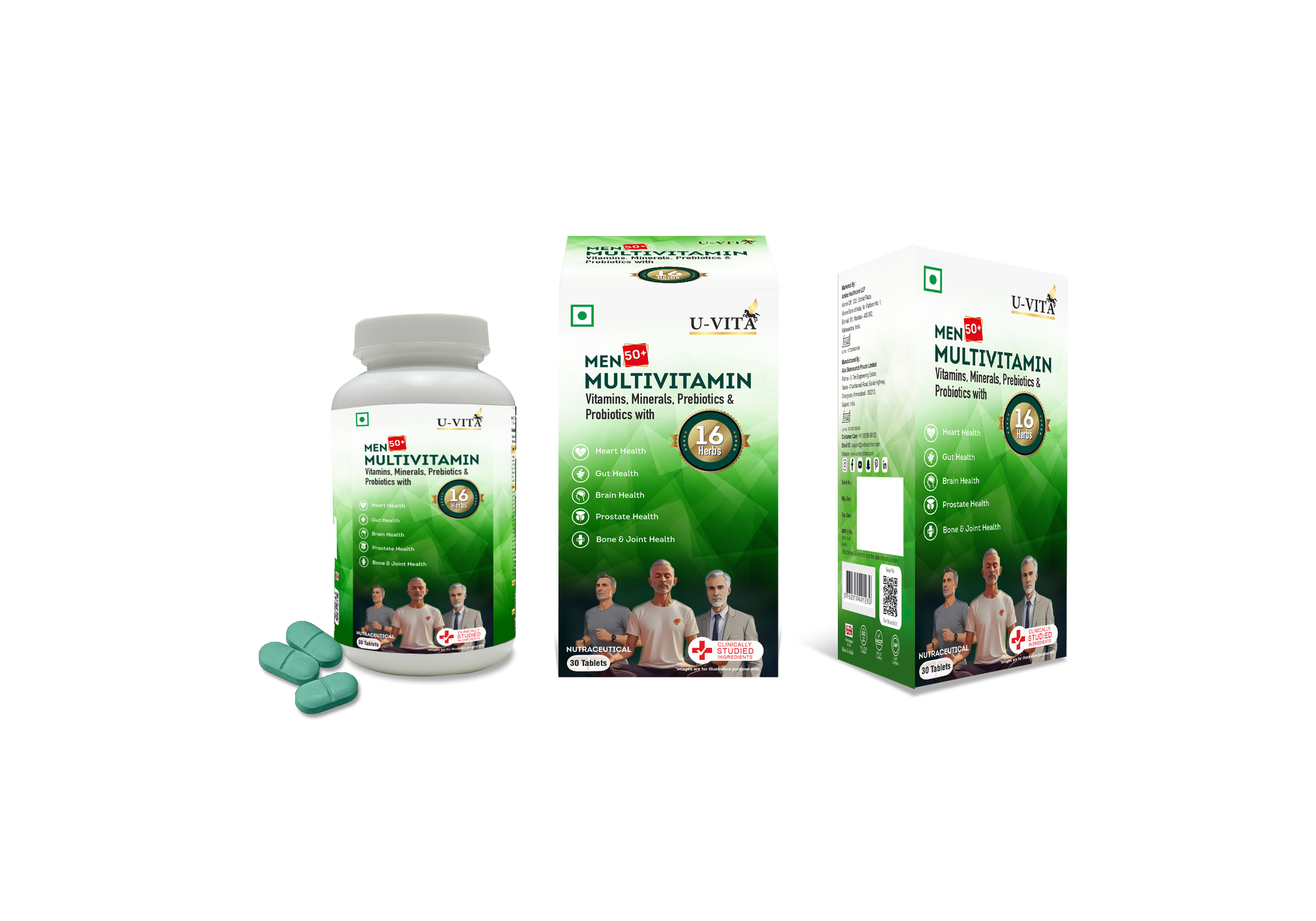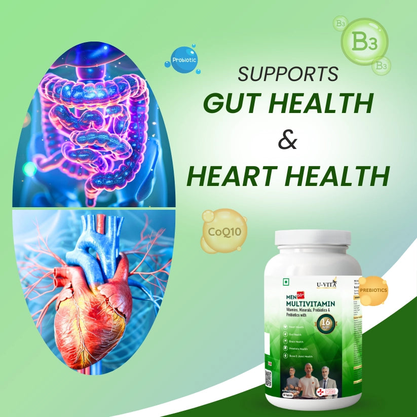 Men 50+ Multivitamin is designed to support energy, heart health, and active aging.