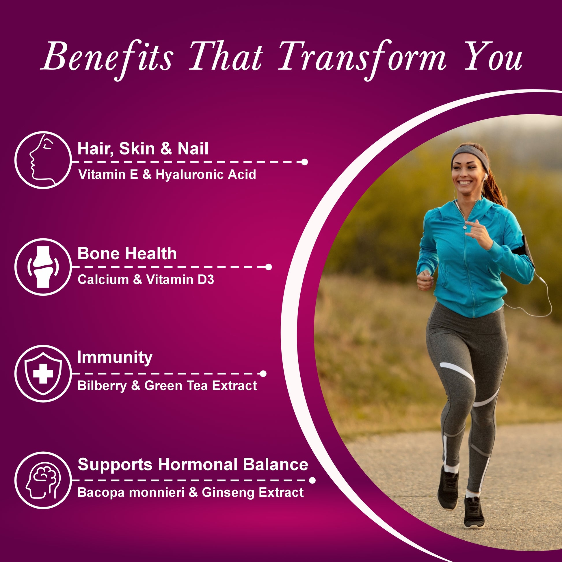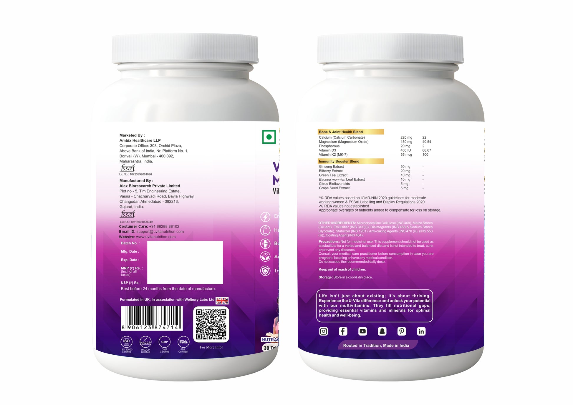 U-Vita Women’s Multivitamin is an advanced daily blend designed to fuel energy, focus, and resilience for today’s active women. Enriched with CoQ10, Ashwagandha, Beet Root Extract, and essential vitamins, it helps support stamina, heart health, glowing skin, and stress balance so you can thrive through busy days with strength and clarity.