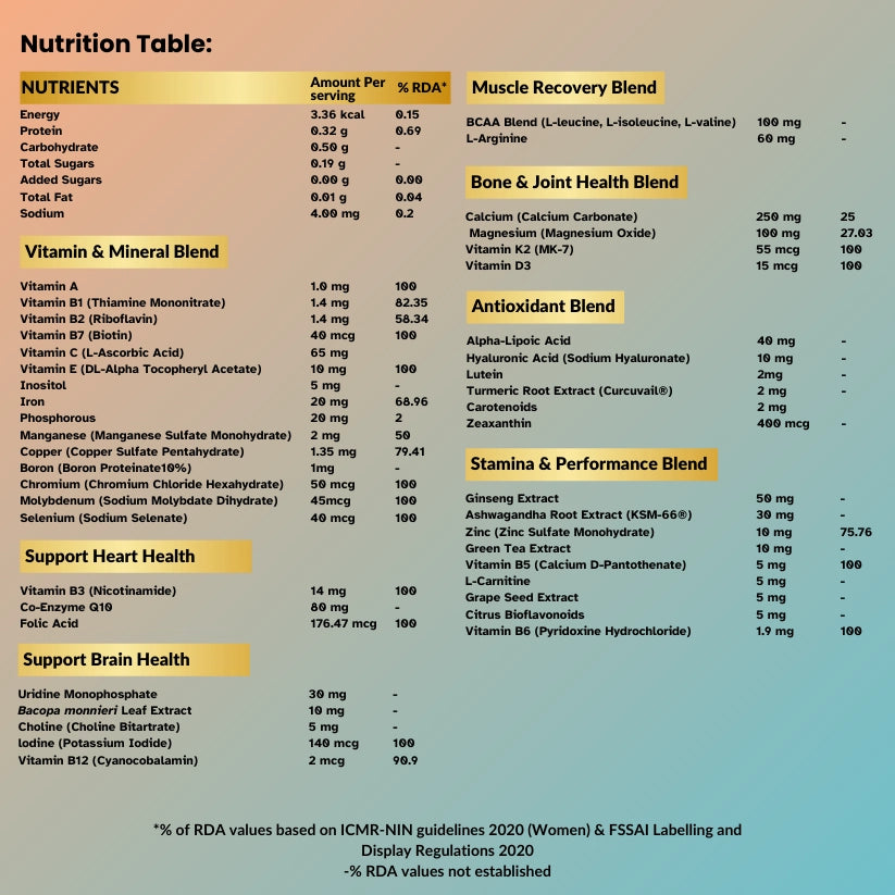 It combines key nutrients, vitamins, minerals, and herbal extracts to maintain stamina and wellness.