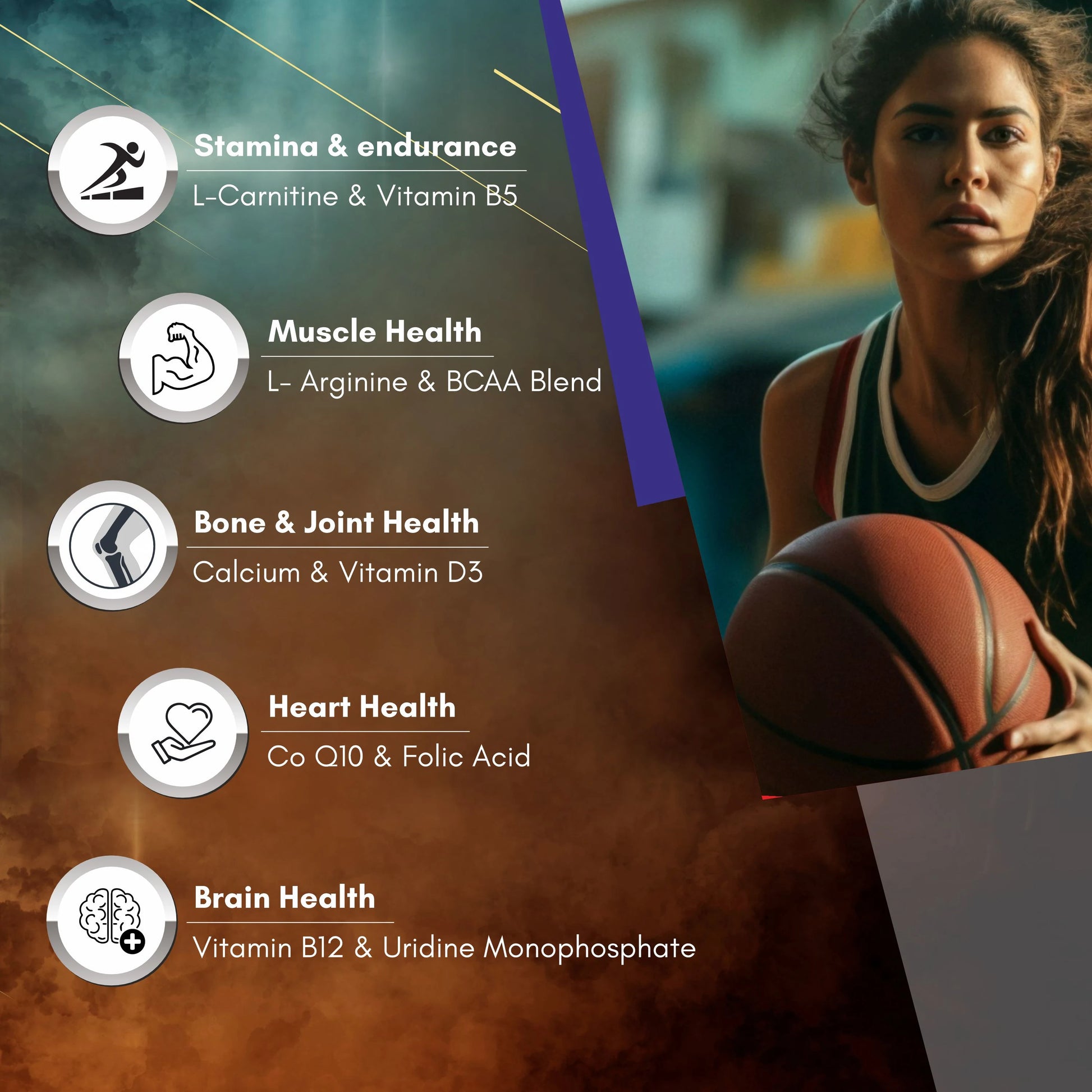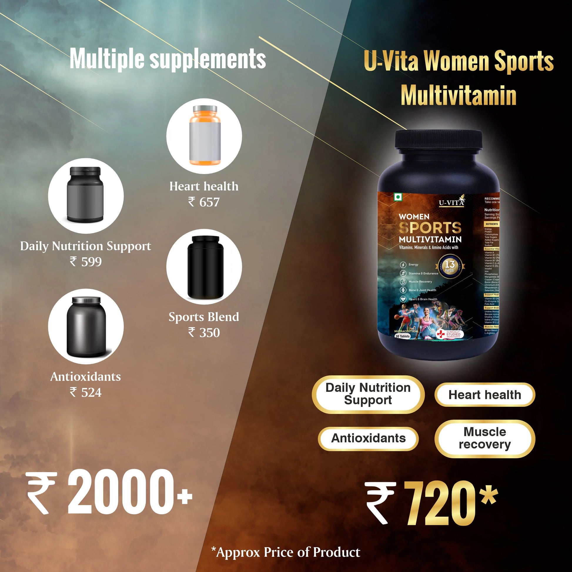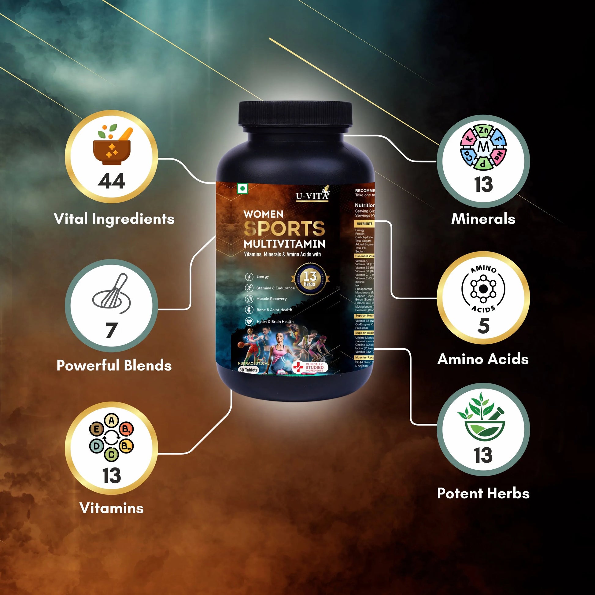 U-Vita Women’s Sports Multivitamin is a high-performance daily supplement designed to power energy, recovery, and resilience for active women. Enriched with vitamins, minerals, amino acids, and herbal extracts, it supports strength, stamina, and focus helping you perform your best in the gym and beyond.